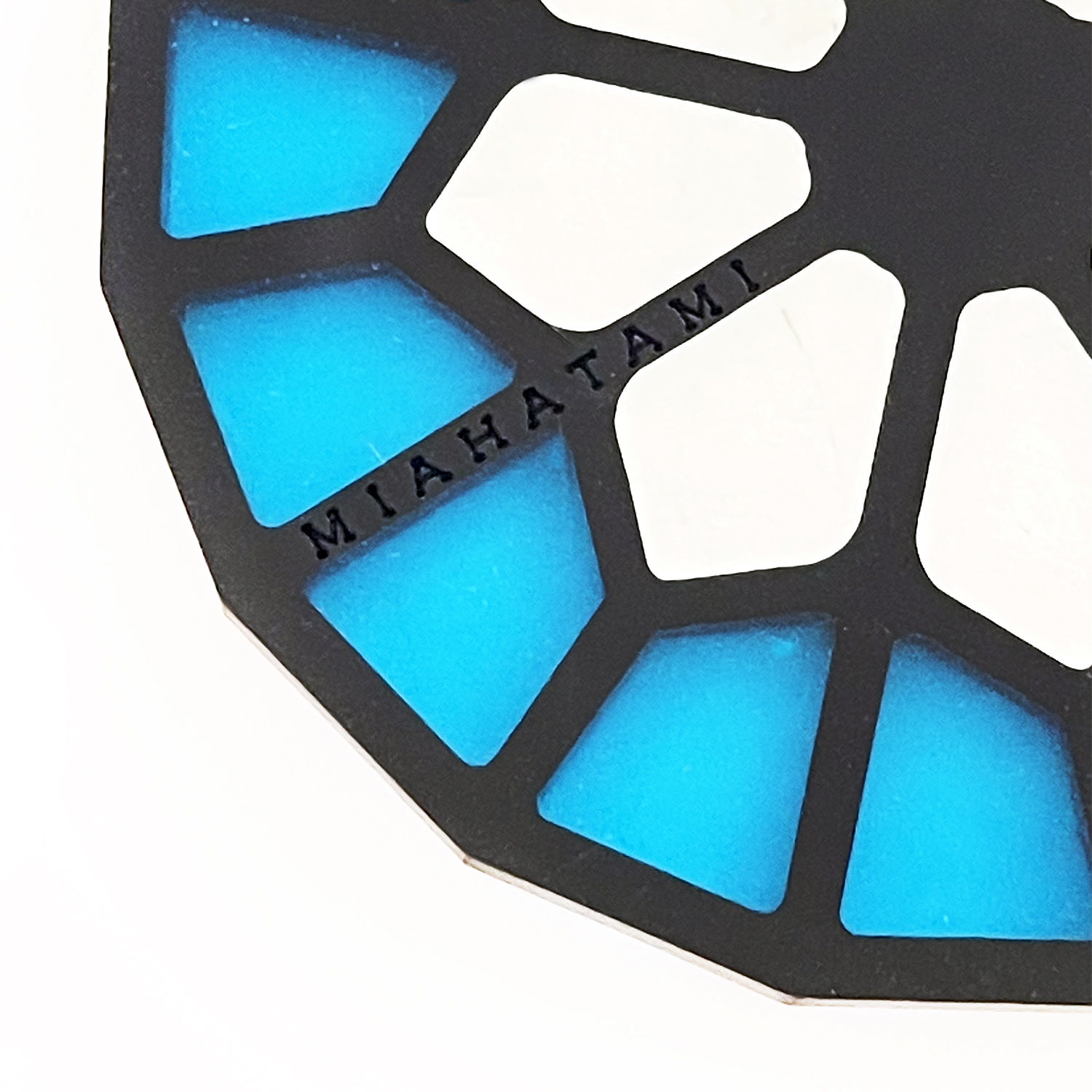The kaleidoscopic geometries present in this small collection of earrings, in collaboration with The Persian Caravan, refer to the superb stained glass window, dating back to the late 60s of the last century, of the private ballroom of the Saadabad palace. The wonderful and irresistible iridescent colors of this window are re-proposed in a more playful key in the transparent plexiglass earrings as if to imitate the play of lights of that window.